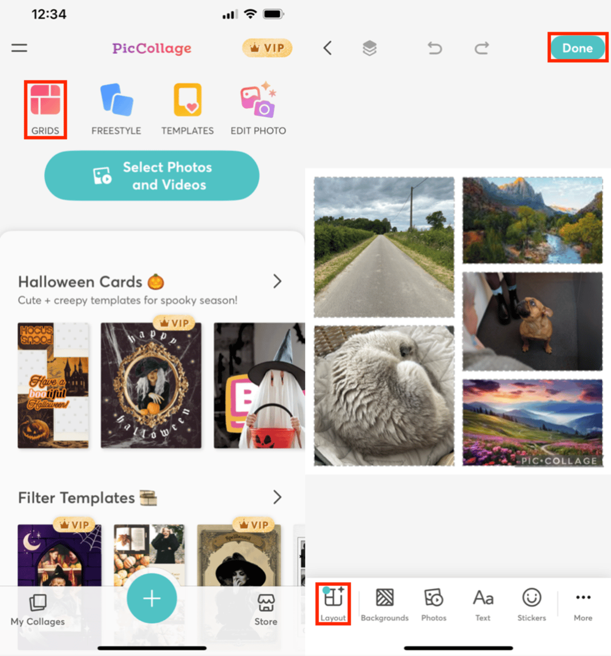 - Lorsque vous êtes satisfait de la conception de votre collage, appuyez sur Terminé.