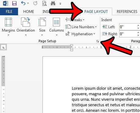 Vous pouvez également ajuster la taille de la section En-tête en modifiant la marge supérieure. Cliquez sur leMise en pageen haut de la fenêtre, puis cliquez sur le petitMise en pagebouton dans le coin inférieur droit duMise en pagesection du ruban.