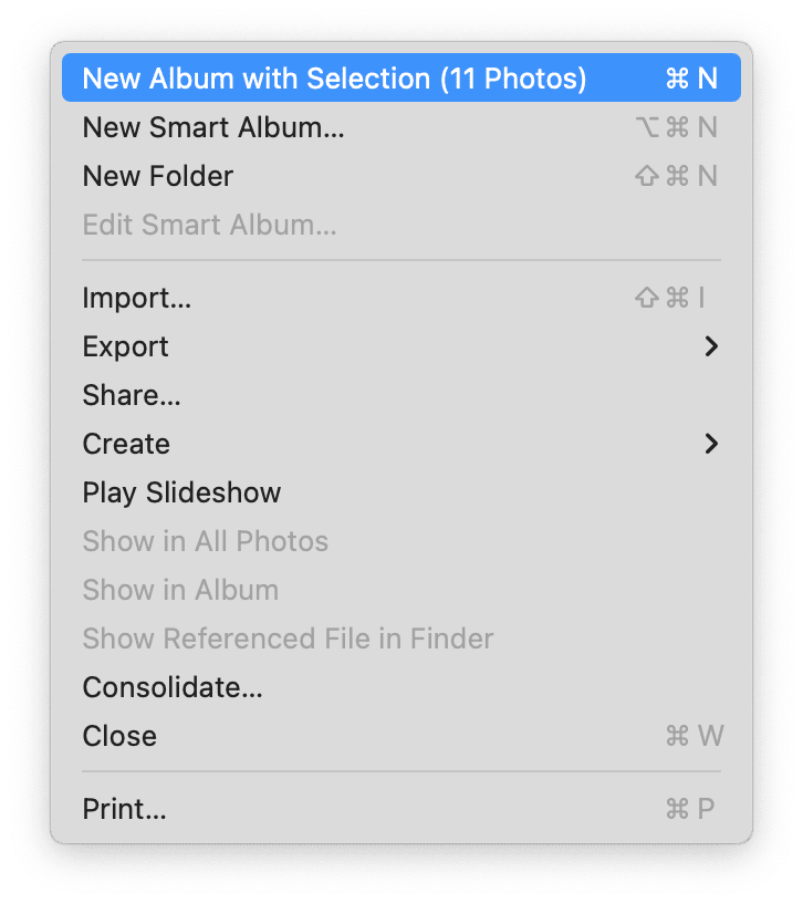 Cliquez sur Fichier > Nouvel album (avec le nombre de photos sélectionné) et donnez-lui un nom,