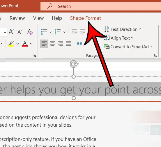 - Sélectionnez leFormat de formeonglet en haut de la fenêtre.
