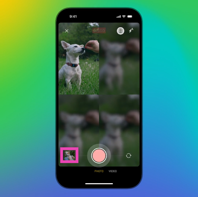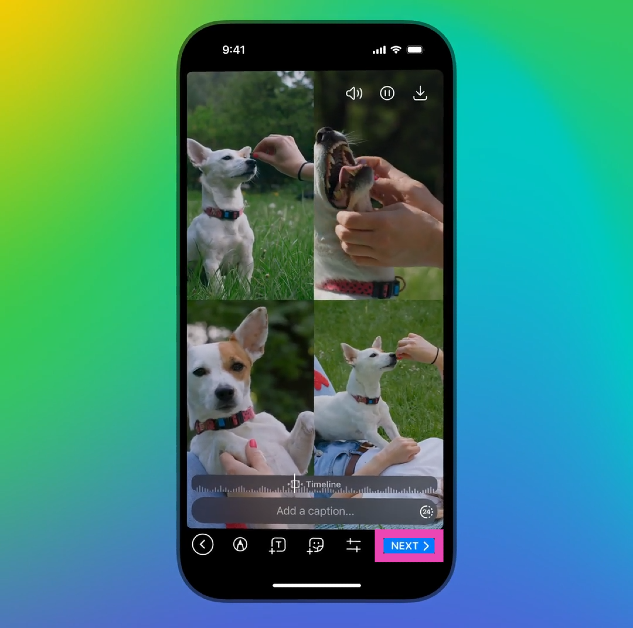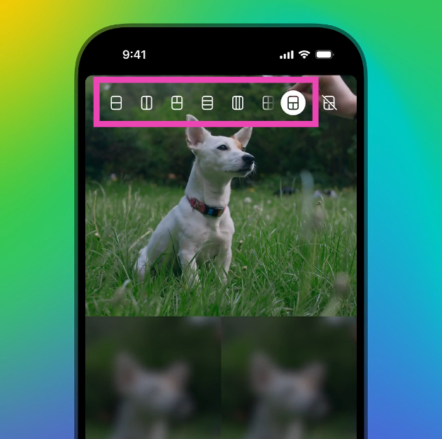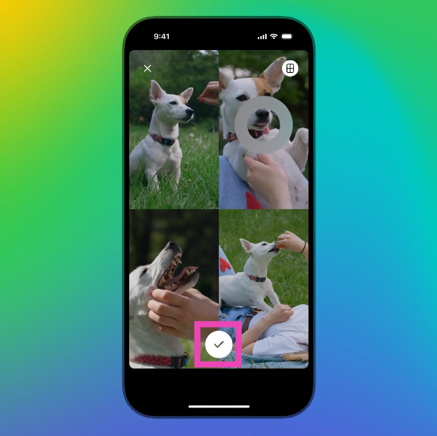 Appuyez sur « Mon histoire », appuyez sur l'icône de collage en haut de l'écran, sélectionnez une mise en page et ajoutez des médias sur chaque panneau. Lorsque vous avez terminé, appuyez sur l'icône de coche.