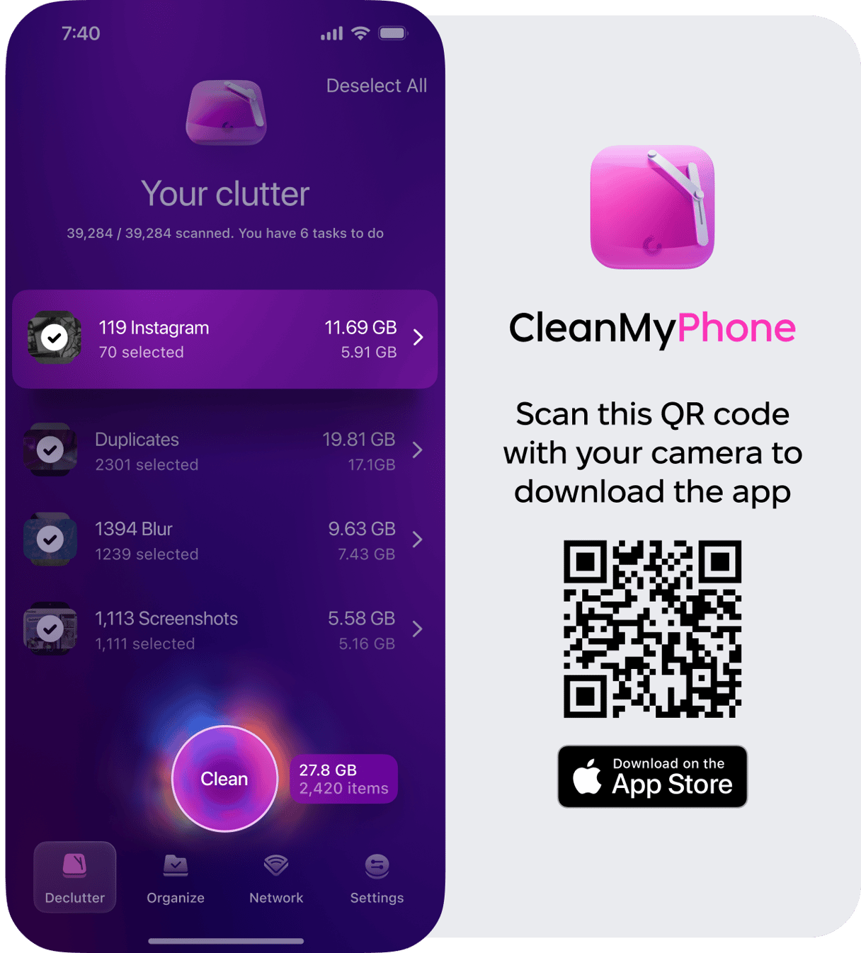 Le partage de photos sur Instagram peut remplir tranquillement le stockage de votre iPhone, car l'application conserve des copies locales de ce que vous publiez.CleanMy®Téléphonevous aide à récupérer cet espace en identifiant et en supprimant les photos Instagram en double stockées sur votre appareil.