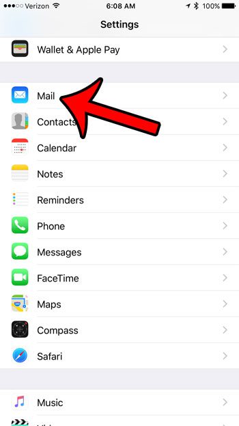 Étape 2 : Faites défiler vers le bas et sélectionnez leMailoption.