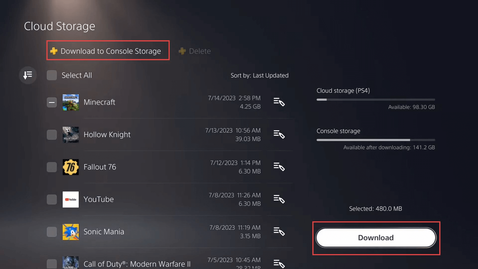 Étape 8– une fois le téléchargement terminé, vous pouvez désormais quitter l’application Minecraft. Accédez à l'interface et, une fois là-bas, accédez auTéléchargersection. Sélectionnez ensuite le monde Minecraft corrompu, puis lancez le processus de récupération sur votre PS4/5.