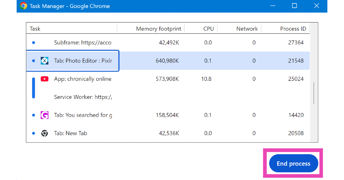 Utilisez le gestionnaire de tâches de Google Chrome