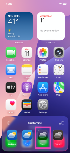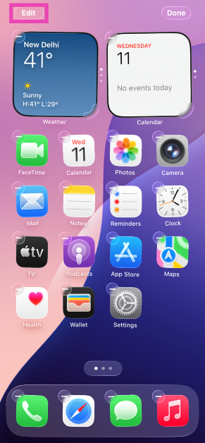 Appuyez longuement sur un endroit vide de la page d'accueil et appuyez sur le bouton Modifier dans le coin supérieur gauche de l'écran. Sélectionnez « Personnaliser » et choisissez « Effacer ».