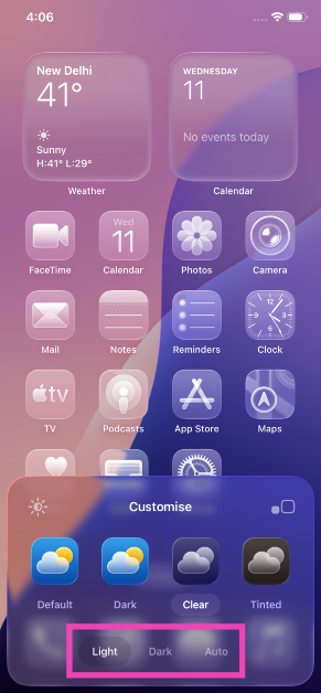 Étape 5 :Choisissez unlumièreouthème sombre. Vous pouvez également sélectionnerAuto, qui adhère à votre programme de mode sombre personnalisé.