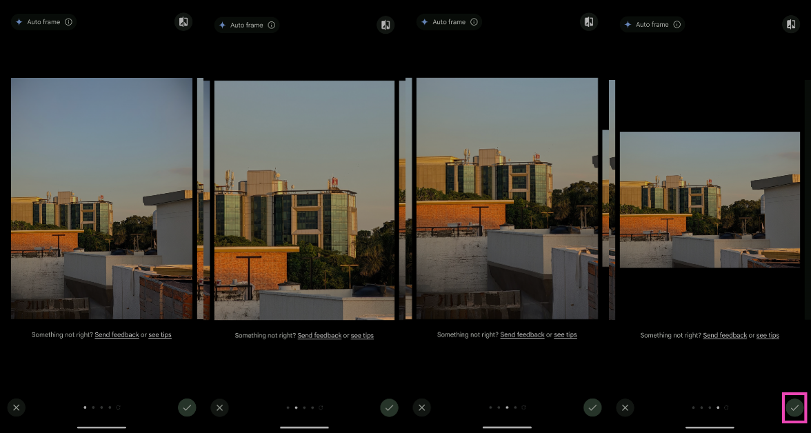 L'outil Auto Frame apparaît comme une suggestion permanente dans Magic Editor. Nous avons utilisé cet outil sur un large éventail d’images et avons été impressionnés par sa précision et ses compétences en composition. Sur les images où le positionnement du sujet est légèrement décalé, l'outil Cadre automatique effectue un zoom arrière et le réaligne dans un meilleur endroit. Le nouvel espace créé suite au zoom arrière est rempli par l’IA générative. Le Magic Editor étudie l'image et génère un arrière-plan qui lui correspond. Nous avons été particulièrement surpris par la façon dont l'outil Auto Frame a ajusté une image agrandie en orientation portrait et l'a transformée en une photo de paysage sans rendre les nouveaux détails trop artificiels.