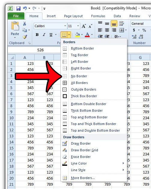 Si vous travaillez avec un fichier dans Excel 2010 contenant des bordures indésirables, vous cherchez peut-être un moyen de supprimer les bordures de plusieurs cellules à la fois. Notre tutoriel ci-dessous vous guidera tout au long du processus de réalisation de cette tâche.