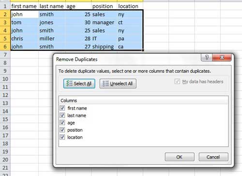 - Sélectionnez les colonnes dans lesquelles vous souhaitez qu'Excel recherche les données en double.