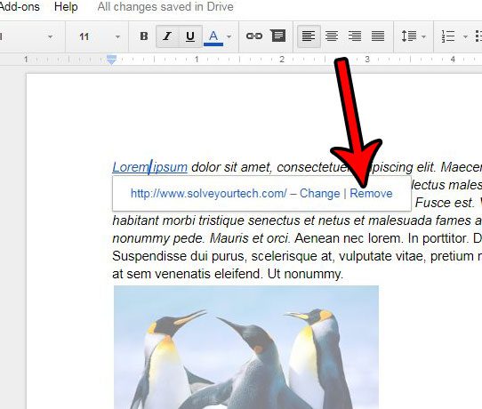 Notre guide continue ci-dessous avec des informations supplémentaires sur la suppression des hyperliens d'un document Google, y compris des images de ces étapes.