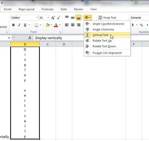 Comme mentionné précédemment, cela rendra le texte vertical à l'intérieur de la cellule si ce texte est déjà là. Il peut également définir la cellule pour vous permettre d'écrire verticalement si la cellule est actuellement vide.