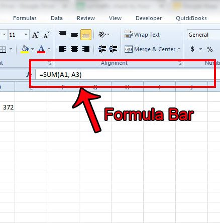 Les étapes de cet article vous montreront un moyen simple d'identifier toutes les cellules de votre feuille de calcul Excel contenant une formule. Si vous cliquez sur l'une de ces cellules, la formule contenue dans la cellule sera affichée dans la barre de formule au-dessus de la feuille de calcul, comme dans l'image ci-dessous.