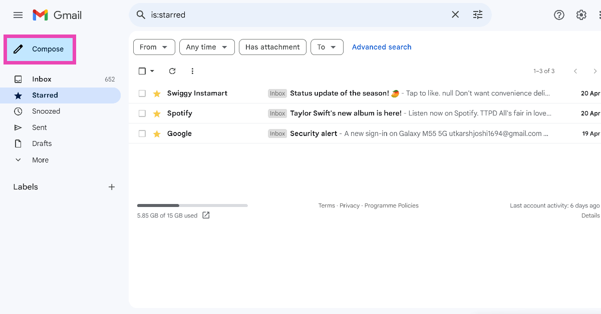 Étape 1 :Connectez-vous à votre service de messagerie et cliquez surCompose.