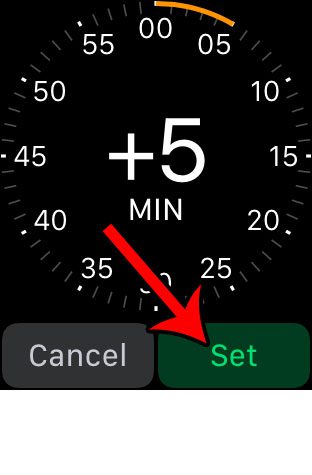 Étape 4 : Tournez la couronne sur le côté de la montre pour sélectionner le nombre de minutes pendant lesquelles vous souhaitez avancer la montre. Appuyez sur leEnsemblebouton lorsque vous avez terminé.