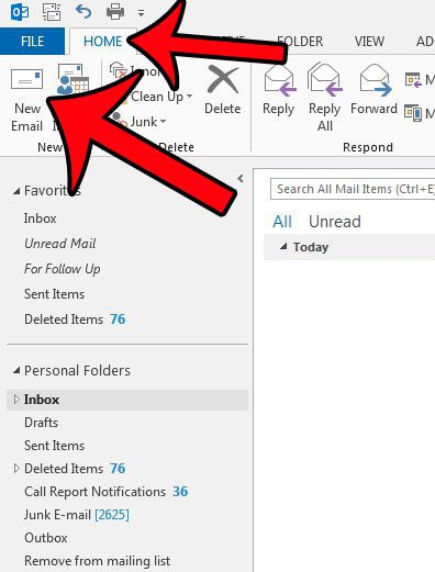 - Étape 2 : Créez un nouveau message électronique en cliquant sur leMaisonen haut de la fenêtre, puis l'ongletNouvel e-mailbouton dans leNouveausection du ruban Office.
