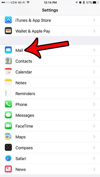 Vous pouvez trouver ces informations en allant surParamètres > Courrierpuis faites défiler la liste des options jusqu'à ce que vous trouviez ce que vous cherchez à modifier.