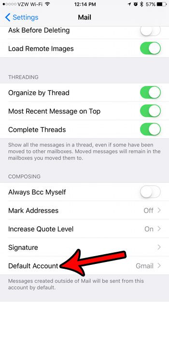 Ainsi, si vous avez plusieurs comptes de messagerie sur votre appareil, mais que chaque nouveau message que vous créez est envoyé à partir d'un compte à partir duquel vous ne souhaitez pas envoyer, vous devrez probablement modifier le compte de messagerie par défaut sur votre iPhone 5.