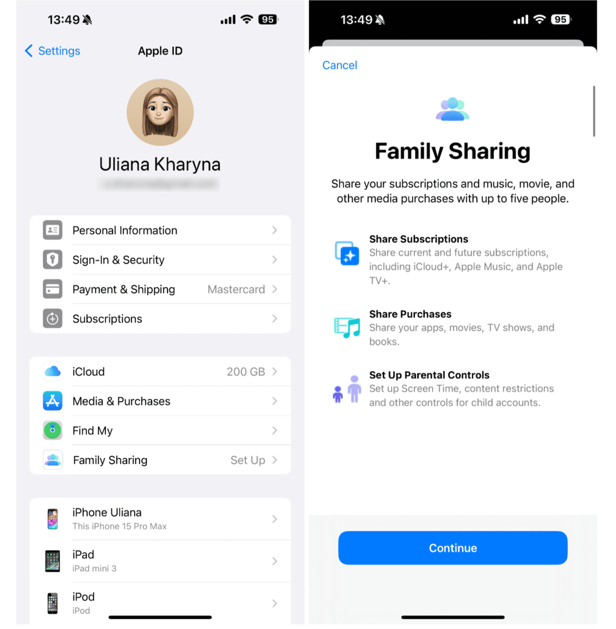 - Appuyez sur votre identifiant Apple et choisissez Partage familial.