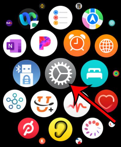 Étape 1 : Appuyez sur le bouton couronne sur le côté de la montre pour accéder à l'écran de l'application, puis touchez l'icône d'engrenage.