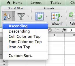 Heureusement, vous pouvez trier vos données dans Excel pour Mac 2011, ce qui vous permet d'organiser les données par ordre alphabétique, numérique ou même par couleur de cellule ou de police.