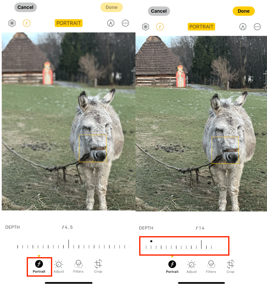 - Lorsque vous êtes satisfait de la profondeur de champ et du bokeh de l’arrière-plan de votre portrait, appuyez sur Terminé.