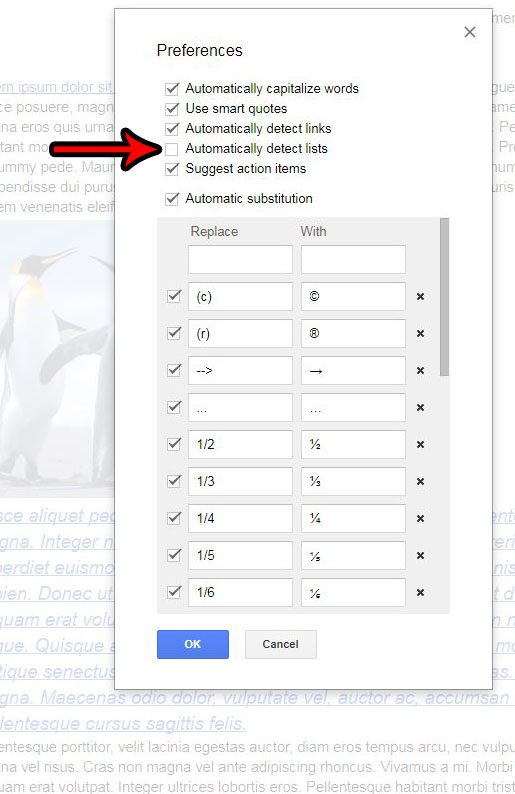 Étape 3 : Décochez la case à gauche deDétecter automatiquement les listes, puis cliquez sur leD'ACCORDbouton en bas de la fenêtre.