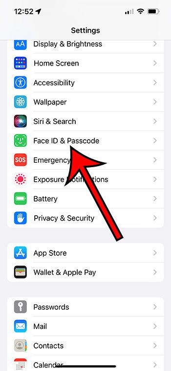 Étape 2 : Faites défiler vers le bas et sélectionnezIdentification faciale et code d'accès.