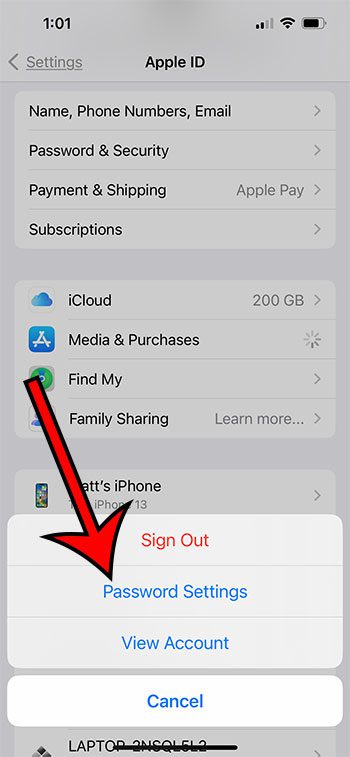 Étape 8 : Appuyez surParamètres de mot de passe.