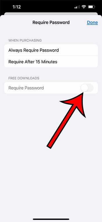 Notre guide continue ci-dessous avec des informations supplémentaires sur la façon de désactiver le mot de passe pour l'App Store sur un iPhone 13, y compris des images de ces étapes.