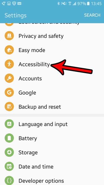 Étape 3 : Faites défiler vers le bas et sélectionnezAccessibilité.
