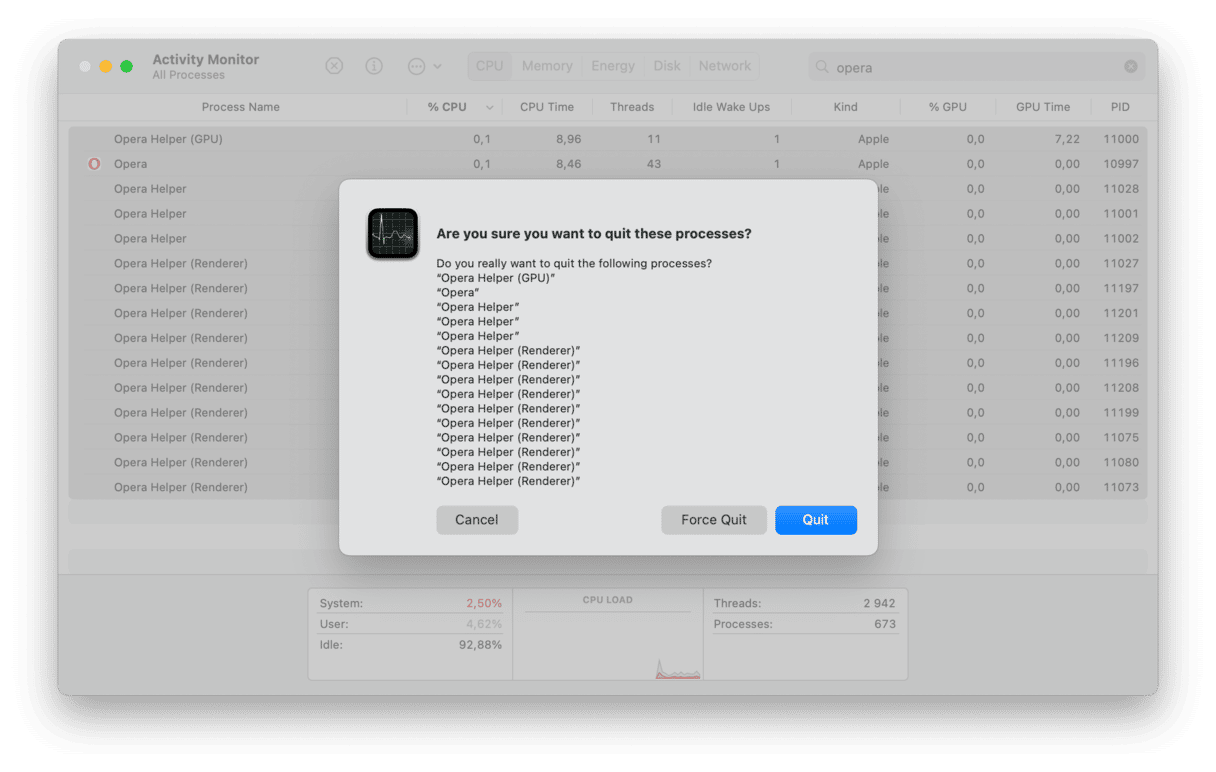 - Une fois que vous avez quitté tous les processus Opera, quittez Activity Monitor.