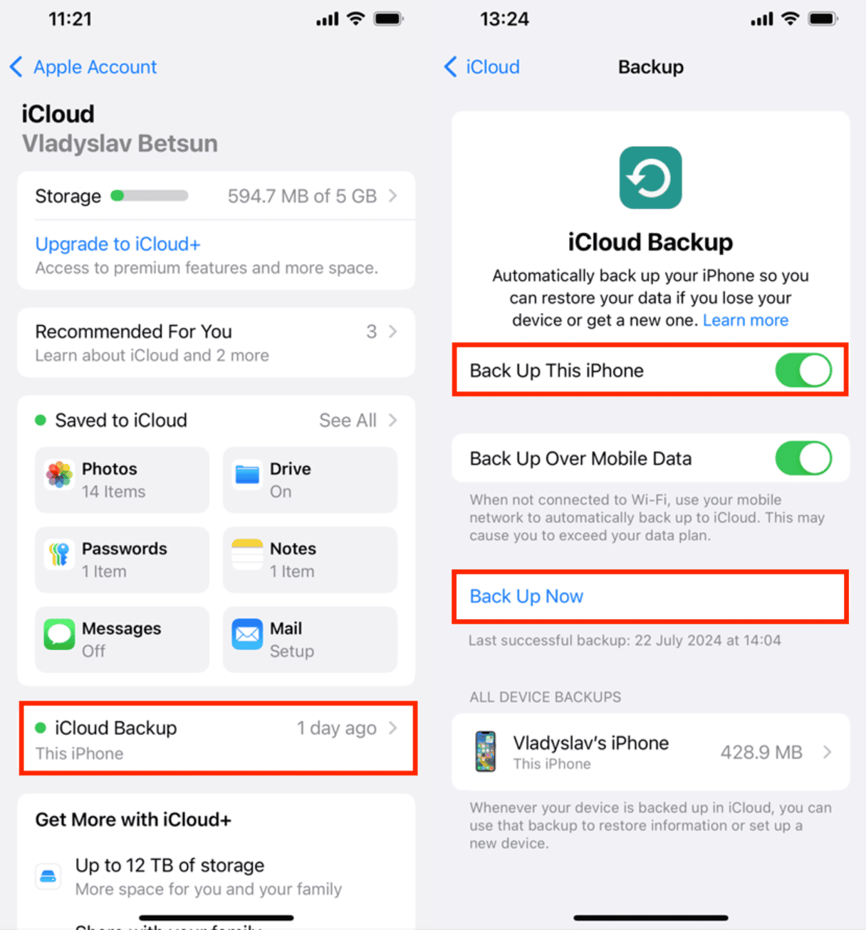 - Appuyez sur iCloud > Sauvegarde iCloud.