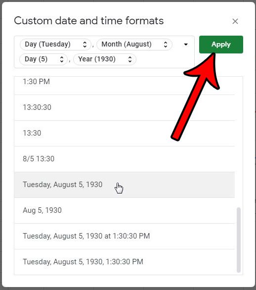 Étape 5: Sélectionnez le format souhaité dans la liste, puis cliquez sur leAppliquerbouton en haut à droite de la fenêtre.