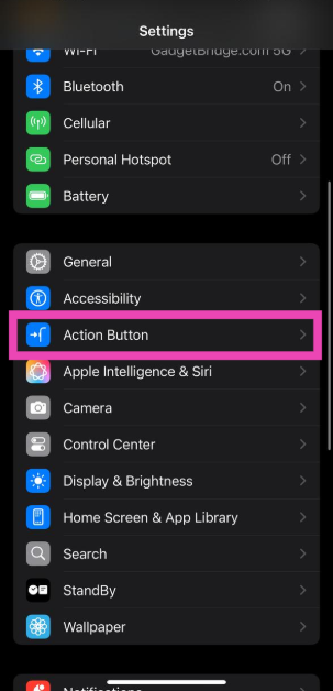 Étape 1 :Aller àParamètreset sélectionnezBouton d'action.
