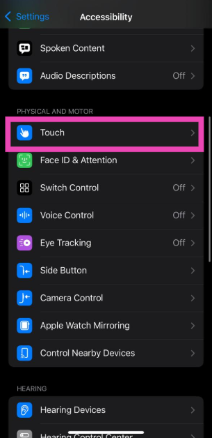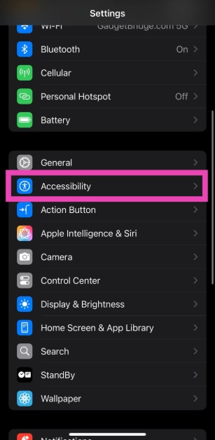 Étape 1 :Aller àParamètreset sélectionnezAccessibilité.