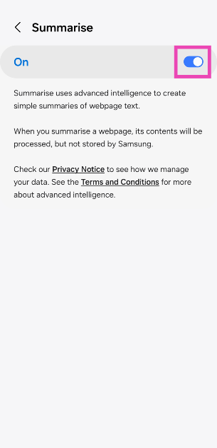 Étape 10 :Galaxy AI créera unbref résumédu texte sur la page Web.