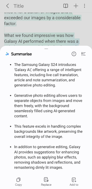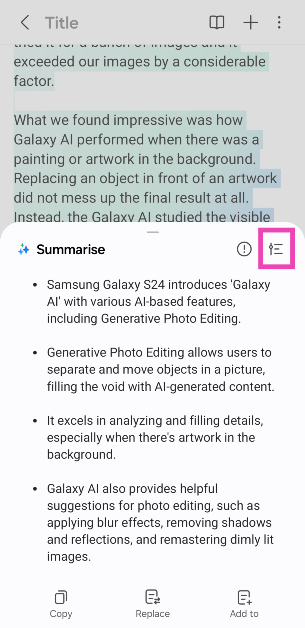 Étape 5 :Galaxy AI générera unrésumédu texte.