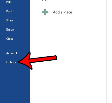 Étape 2 : CliquezDéposeren haut de la fenêtre, puis cliquez surPossibilitéssur le côté gauche de la fenêtre.