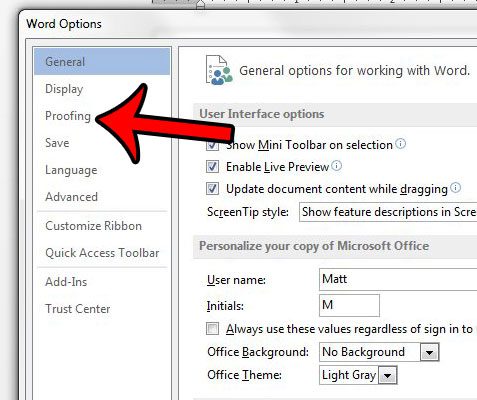 Ouvrez la fenêtre Options WordÉtape 3 : Cliquez sur leVérificationoption sur le côté gauche duOptions de motsfenêtre.