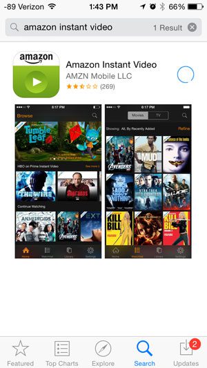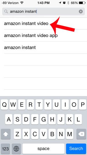 Étape 3 : Tapez « amazon instant » dans le champ de recherche en haut de l'écran, puis sélectionnez le résultat de recherche « amazon instant video ».