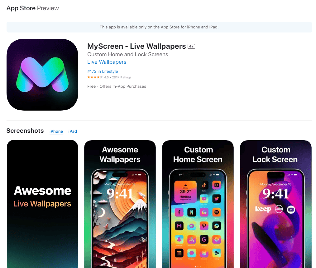 Vous pouvez télécharger des fonds d'écran animés depuis l'App Store. Recherchez des applications dédiées aux fonds d'écran animés et vous trouverez diverses options compatibles avec iOS 17.