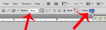 - Ajustez l'option de l'outil Rectangle arrondi dans la barre d'outils en haut de la fenêtre.