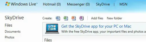 Si vous n'avez pas encore créé un identifiant Windows Live ID, c'est la première étape nécessaire pour obtenir un dossier SkyDrive dans Windows 7. La création d'un identifiant Windows Live ID est un processus gratuit, alors suivezce lienpour créer votre compte. Une fois que vous avez terminé le processus de création de votre Windows Live ID, vous devez ensuite vous rendre dans laPage SkyDriveet connectez-vous avec l'identifiant Windows Live ID que vous venez de créer. Vous verrez alors une page qui ressemble à l’image ci-dessous.