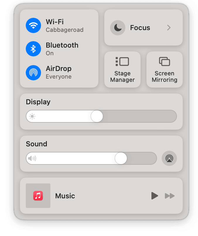 Dans la barre de menu principale, sélectionnez l'icône Control Center.