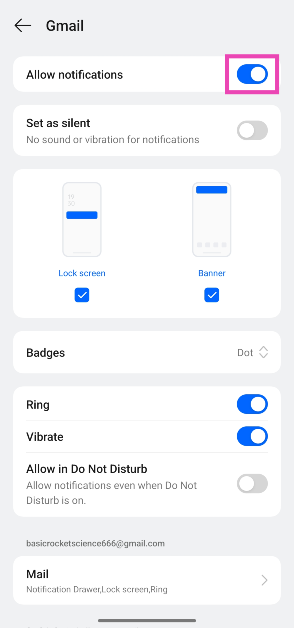 Étape 5 :Allumez l'interrupteur à bascule à côté deAutoriser les notifications.