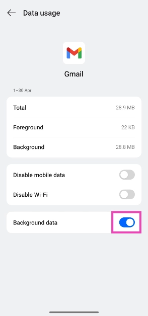 Assurez-vous que Gmail est autorisé à utiliser des données en arrière-plan