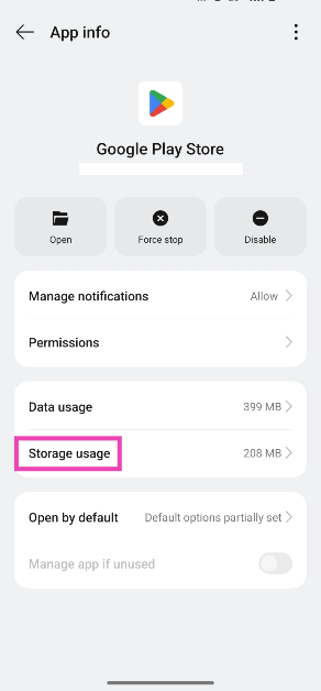 Étape 4 :Appuyez surStorage usage.