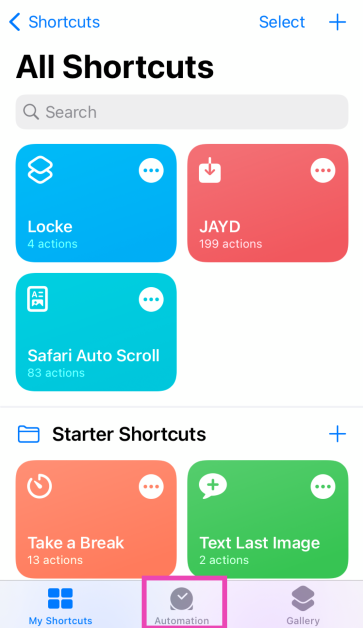 Étape 1 :Lancez leApplication de raccourcissur votre iPhone et passez auAutomationlanguette.