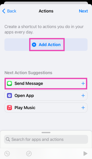 Étape 7 :Appuyez surAjouter une actionet sélectionnezEnvoyer un message. Ou vous pouvez sélectionner directementEnvoyer un messagedans la liste des suggestions.
